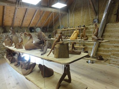 Les sculptures sont ensuite exposées dans ma Salle d'Exposition, ancien fenil, au dessus de mon atelier.